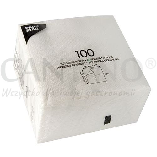 1-warstwowa serwetka papierowa o wymiarach 330 x 330 mm w kolorze białym.
