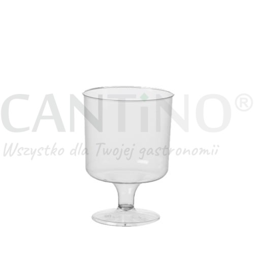 Transparentny kieliszek do wina wykonany z polistyrenu o pojemności 200 ml, średnicy 7,2 cm i wysokości 10 cm.