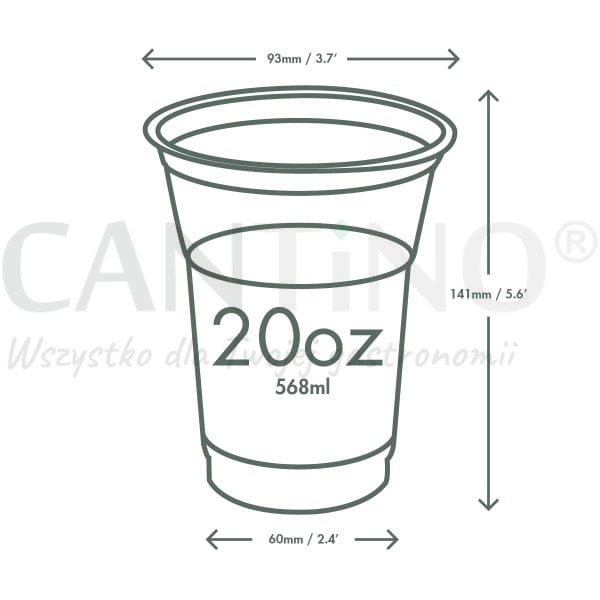 Kubek do napojów zimnych, deserów z PLA "Green Tree" fi 96 mm, 568 ml (paczka 50 szt.)