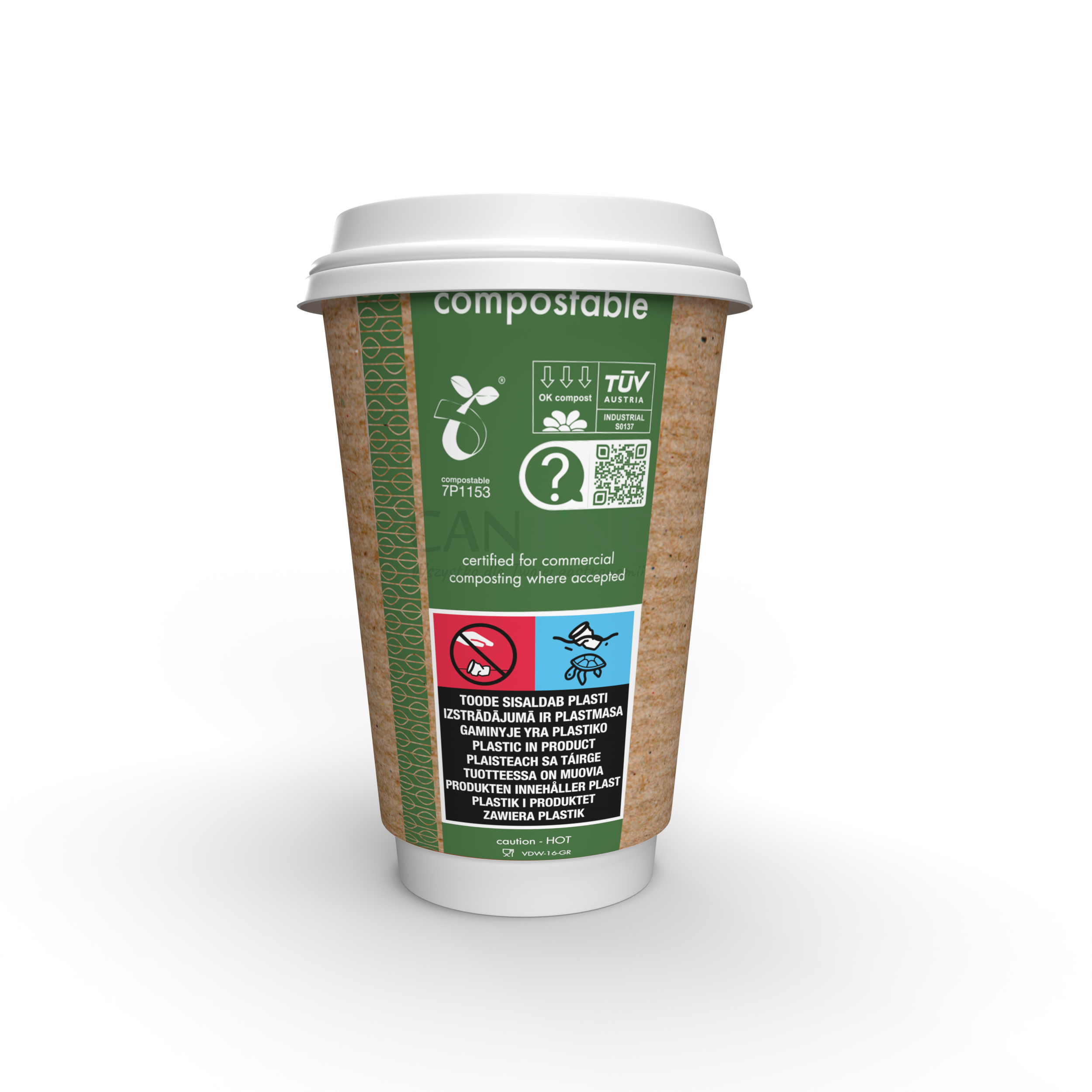 Kubek wykonano z wysokiej jakości papieru powleczonego PLA (mączka kukurydziana), co sprawia, że jest w pełni kompostowalny. Dzięki dwuwarstwowej budowie skutecznie izoluje ciepło i nie odkształca się pod wpływem gorących napojów. Odporny na temperatury do 100°C.