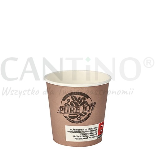 Ekologiczny kubek papierowy o pojemności 100 ml, średnicy 60 mm i wysokości 60 mm, w kolorze brązowym.