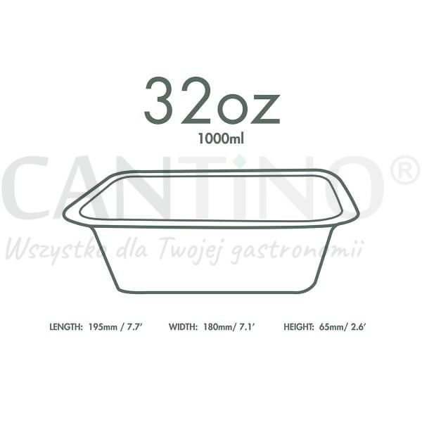 Pojemnik z trzciny cukrowej, 19,5 x 18 x 6,5 cm, 1000 ml (paczka 50 szt.)