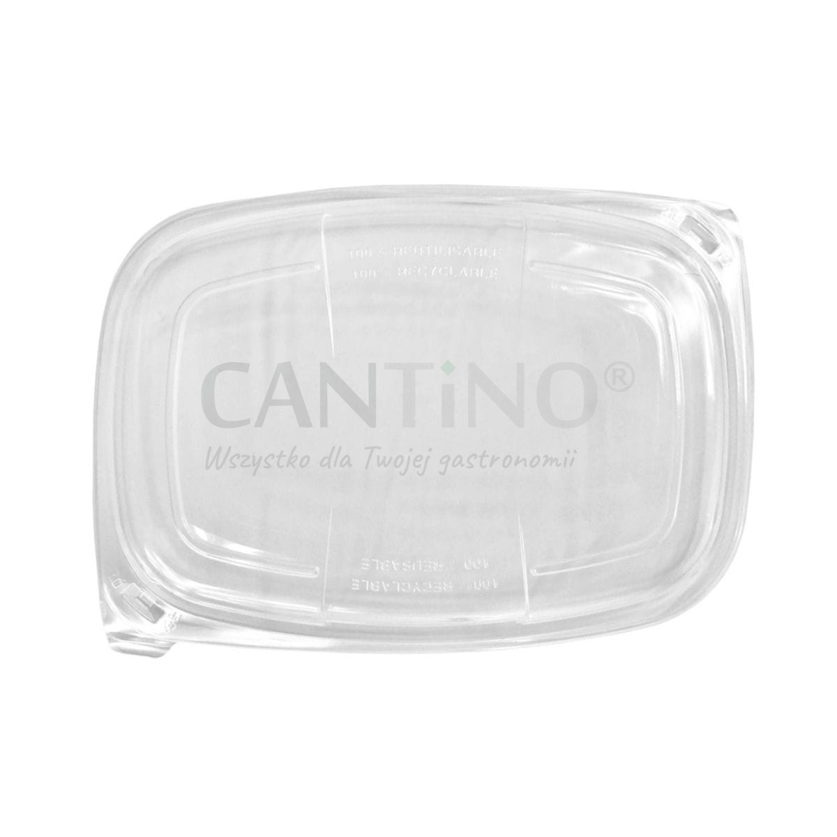 Transparentna, prostokątna pokrywka z PP o wymiarach 25,5 x 19 cm, do pojemników o pojemności 1250 ml.