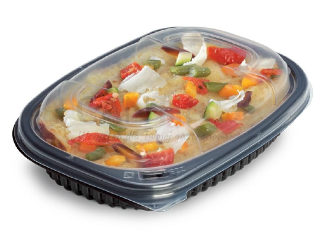 Dzięki precyzyjnemu dopasowaniu zapewnia szczelne zamknięcie, które chroni przed rozlaniem i utratą świeżości. Idealnie sprawdzi się w restauracjach, barach lunchowych, firmach cateringowych, food truckach oraz w punktach oferujących posiłki na wynos i w dostawie. Transparentna pokrywka pozwala szybko sprawdzić zawartość bez konieczności otwierania pojemnika. Doskonała zarówno do dań gorących, jak i zimnych - od zestawów obiadowych po sałatki czy desery.