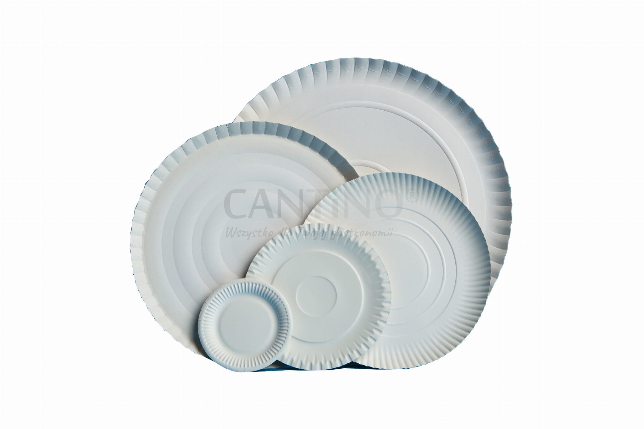 Okrągły talerz, płaski, o średnicy 23 cm.