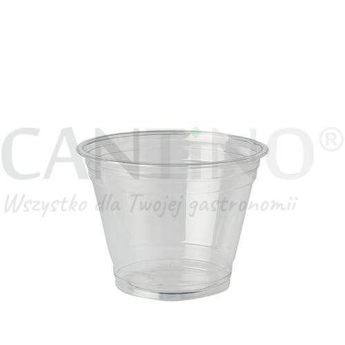 Transparentny kubek z PETu o pojemności 200 ml, średnicy 95 mm i wysokości 73 mm.