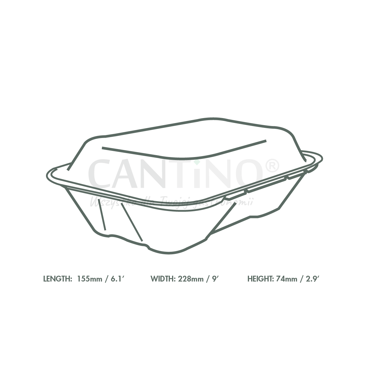 Opakowanie z pokrywką, pulpa z trzciny cukrowej, kolor naturalny, 22,8 x 15,5 x 7,4 cm, 1000 ml (paczka 50 szt.)
