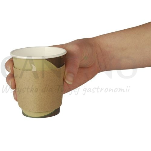 Ekologiczna osłonka tekturowa w kolorze brązowym, przeznaczona do kubków o pojemności 200–300 ml.