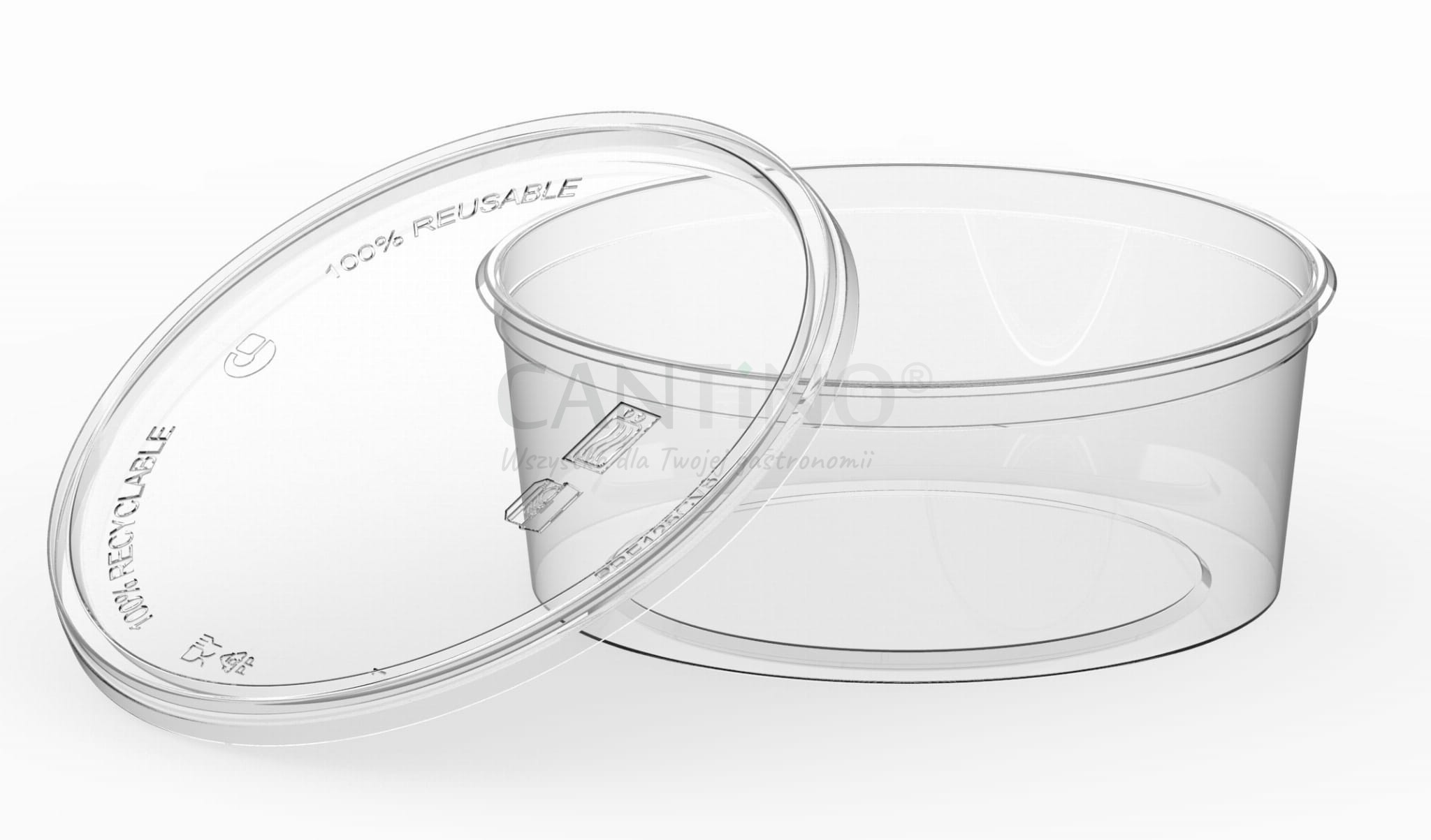 Transparentny pojemnik z PP o pojemności 350 ml i średnicy 125 mm.