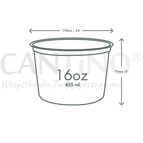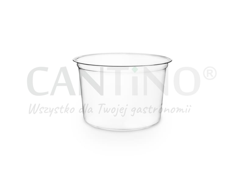 Okrągły, transparentny pojemnik o pojemności 500 ml i średnicy 120 mm.