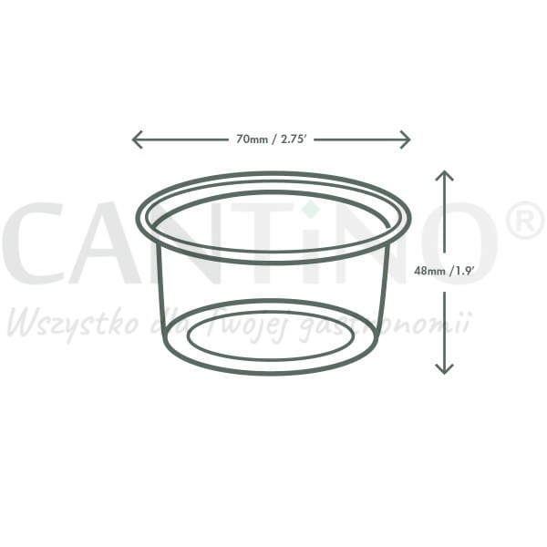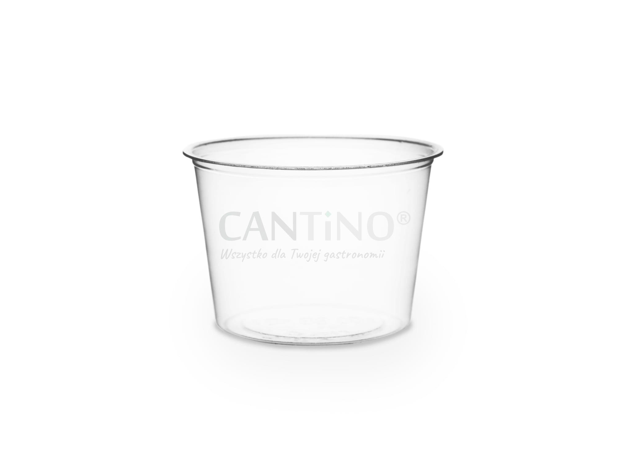 Transparentny, okrągły pojemnik z PLA o pojemności 120 ml i średnicy 70 mm.