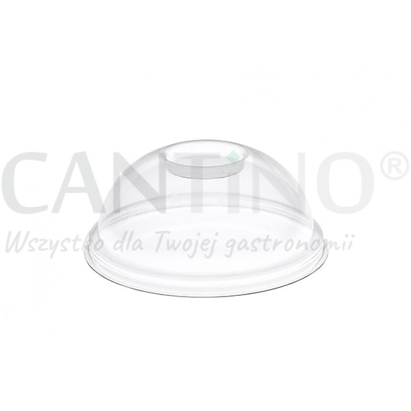 Transparentna, wypukła pokrywka z PLA o średnicy 95 mm, z otworem.