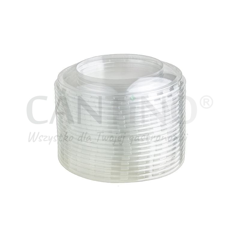 Okrągła, transparentna pokrywka z rPETu o średnicy 101 mm.