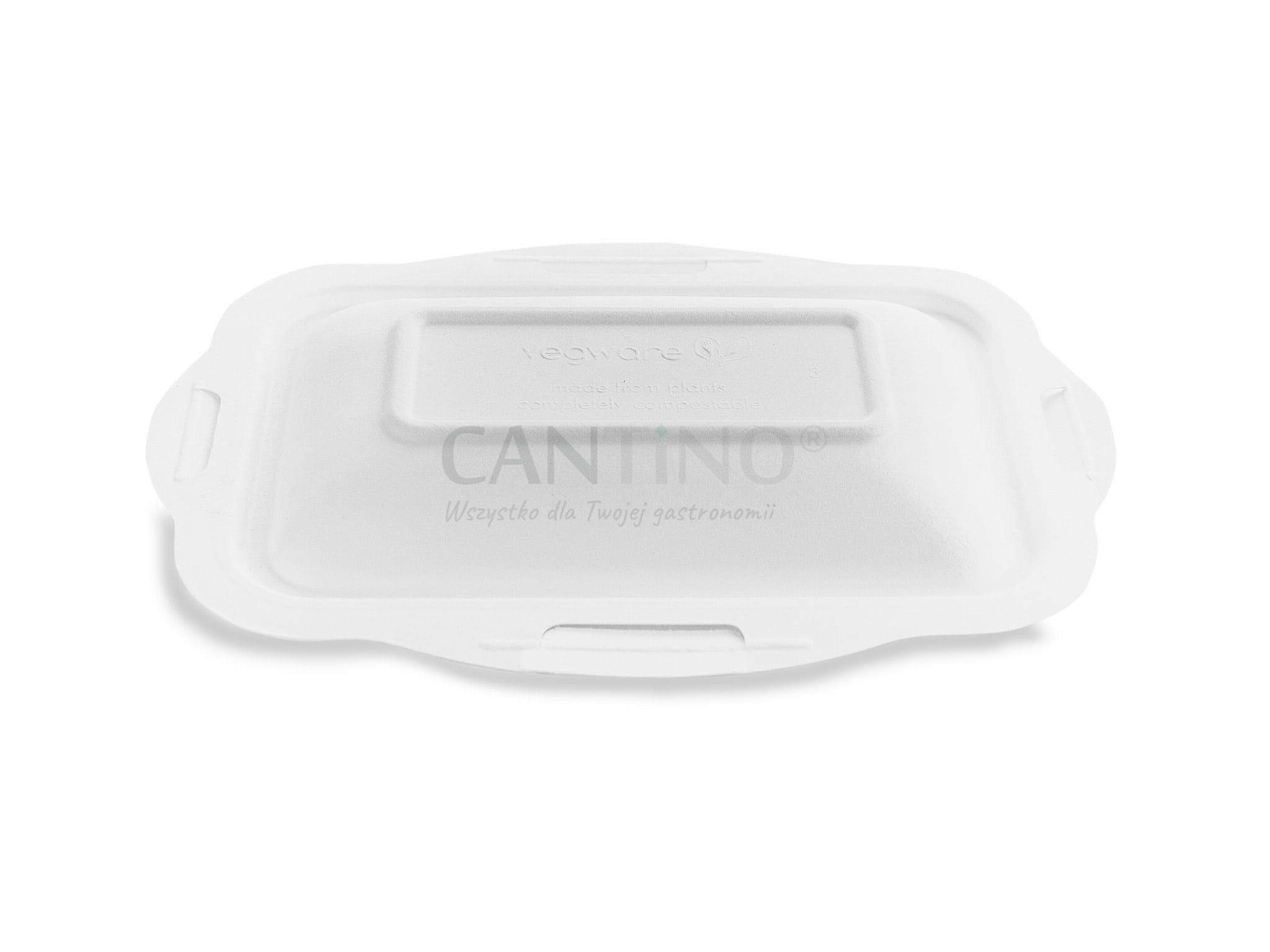 Pokrywka z trzciny cukrowej o wymiarach 19 x 13 cm, w kolorze białym.