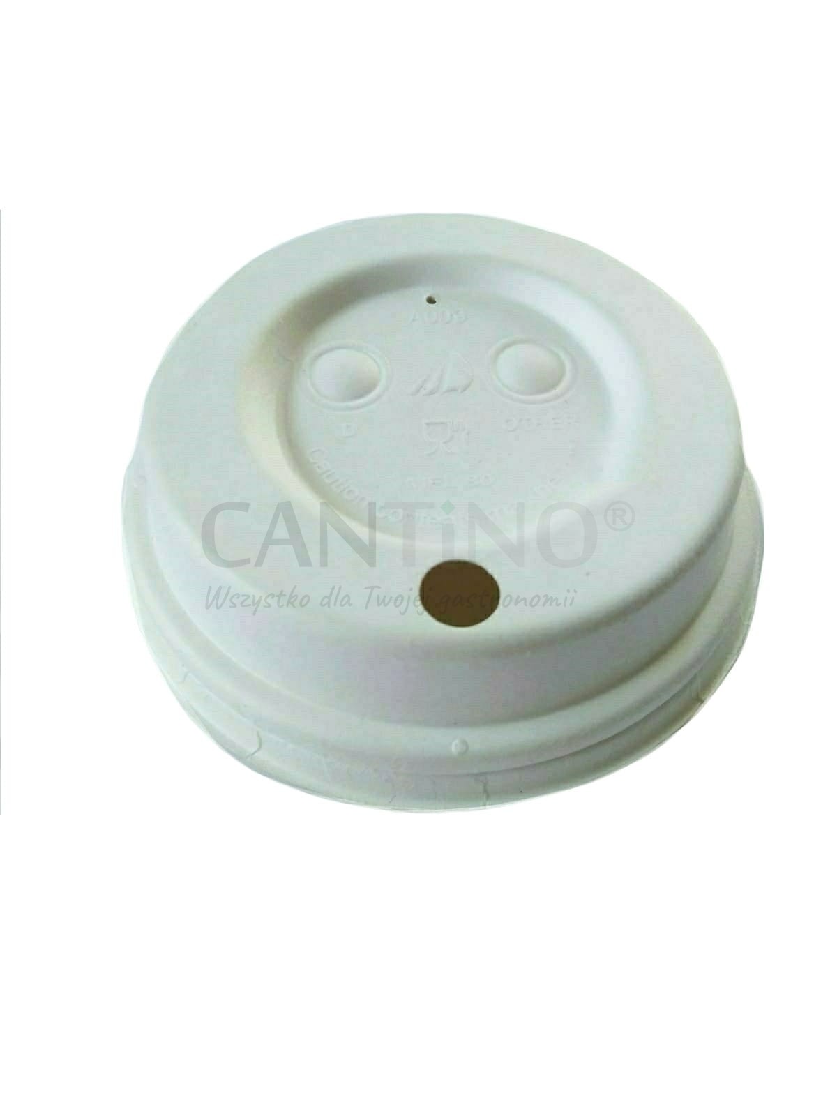 Pokrywka z trzciny cukrowej z otworem o średnicy 80 mm, w kolorze białym.