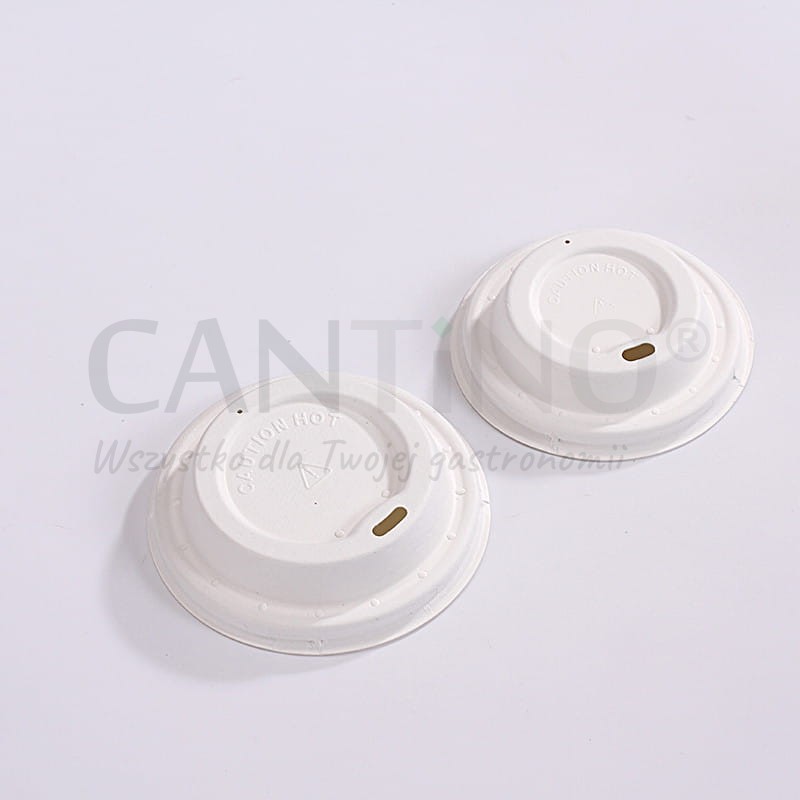 Ekologiczna pokrywka z trzciny cukrowej w kolorze białym, o średnicy 80 mm.