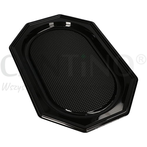 Taca wykonana z rPETu w kolorze czarnym o wymiarach 45,5 x 30,2 x 2,2 cm.