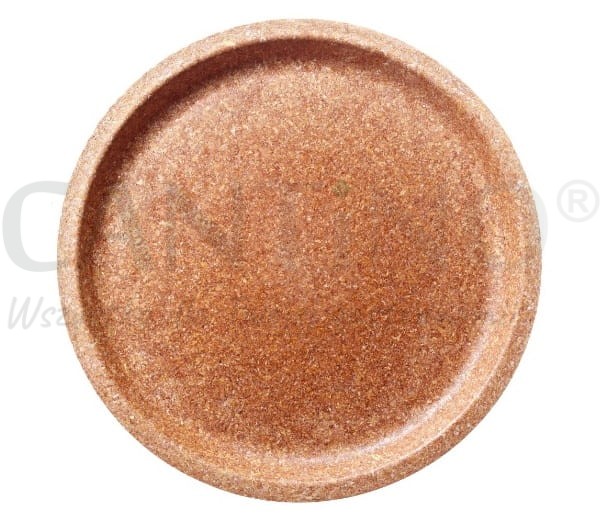 Okrągły, płaski talerz z otrąb pszennych o średnicy 28 cm, w kolorze brązowym.
