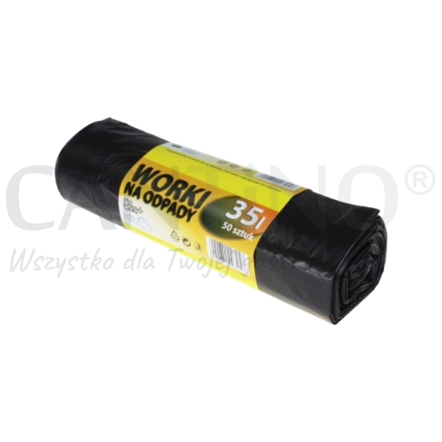 Worek na odpady z folii LDPE o pojemności 35 l oraz wymiarach 50x60 cm, w kolorze czarnym.