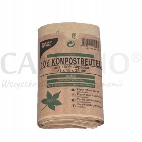 Ekologiczne, papierowe worki na śmieci o pojemności 10 l, w naturalnym kolorze brązowym.