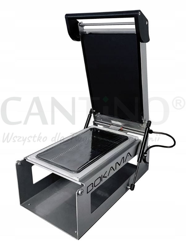 Zgrzewarka do tacek do rozmiaru 405 x 270 mm (w tym np. tacek 1/2GN, rozmiar 325 x 265mm). Posiada możliwość zgrzewania dwóch tacek w jednym cyklu.